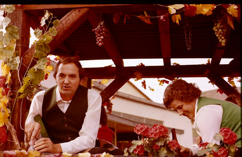 DER WAGEMUTIGE START VOM MISCHBETRIEB ZUM WEINGUT: OMA LIESEL UND OPA FRIEDRICH EDWIN FÜLLEN IHREN ERSTEN JAHRGANG AB.